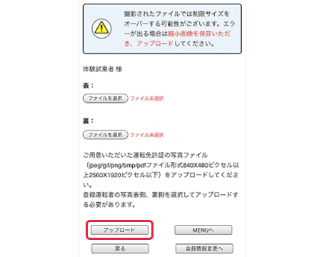 同時に、必ず運転免許証の裏面の画像をアップロードもしくはコピーを郵送していただきますようお願い申し上げます。
